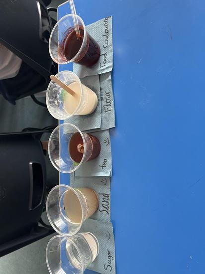 We started the lesson by observing coloured dyes dissolving in water making a solution.