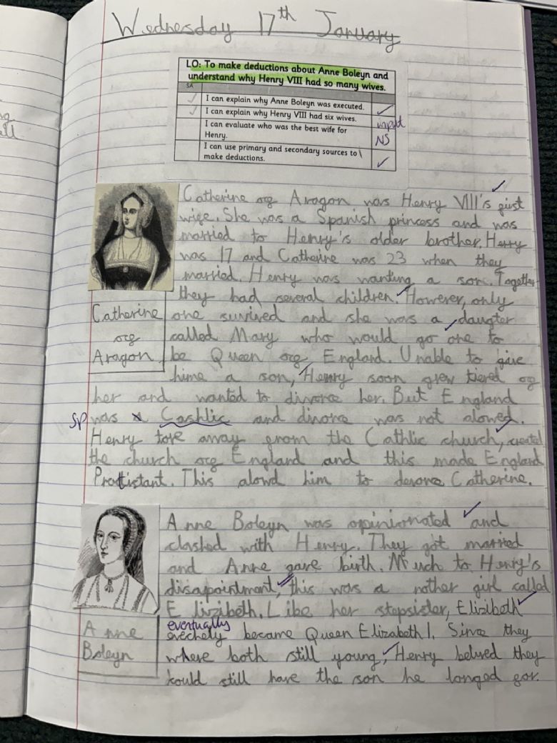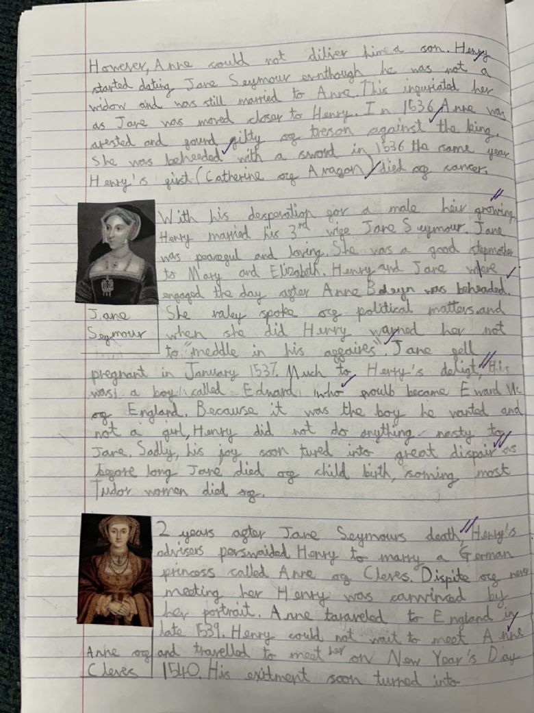 In History, we have started learning about the Tudors. The children have written some fantastic non-chronological reports of Henry VIII six wives.