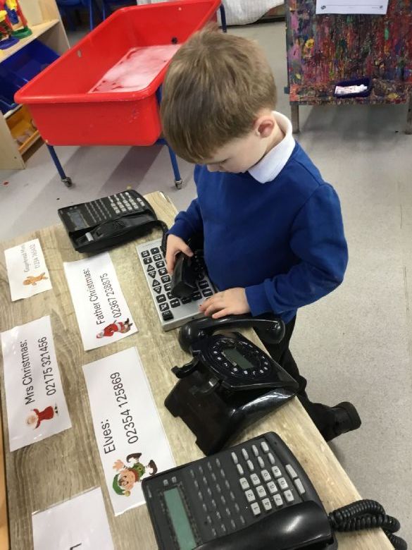 π The children used telephones to “call” Father Christmas, Mrs Christmas, Rudolph, and the Elves by pressing the correct numbers on the keypad. Lots of concentration — and lots of giggles!