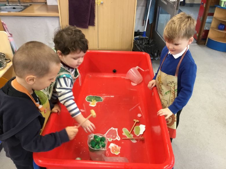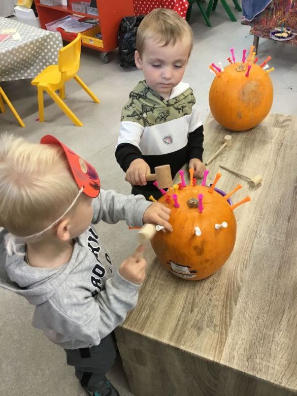 Our fine motor skills have been hard at work too — the children loved hammering golf tees into large pumpkins, showing great concentration and control. ๐๐จ