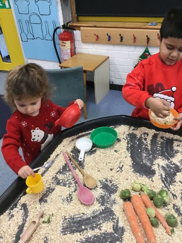 The Reindeer Soup has been a firm favourite again! π¦π² The children explored Brussels sprouts, parsnips and carrots mixed with oats, enjoying lots of scooping, filling, emptying and transporting. This sensory activity supported both physical development and early maths language.