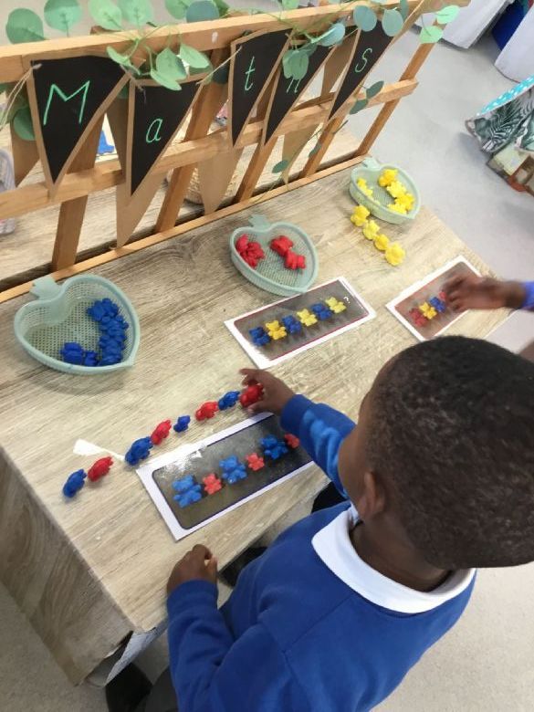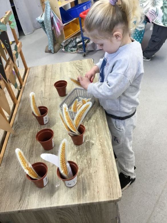 In maths this week, the children practised number recognition by placing the correct amount of wheat into plant pots. They were also challenged to order farm animals by size, helping develop their understanding of comparison and early measurement skills. π’π