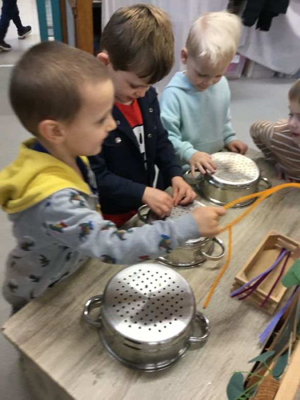 π§΅ Our fine motor skills were challenged even further as we threaded pipe cleaners through colanders. The children showed great concentration and perseverance as they carefully pushed and pulled the pipe cleaners through the holes. π