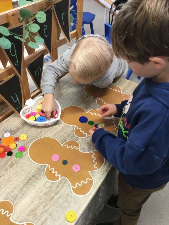 One of our tastiest activities was decorating our own gingerbread man biscuits! The children carefully added two buttons and enjoyed a delicious themed snack. Using the playdough, they practised their fine motor skills by rolling and shaping tiny buttons to place on their playdough gingerbread men — fantastic finger strength and creativity. πͺβ¨