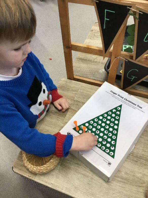To further strengthen fine motor skills, the children carefully placed golf tees into Christmas trees, showing great concentration and control. ππ