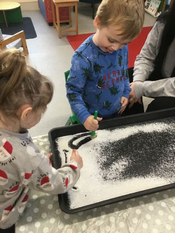 Over in our Home Corner, things have transformed into a bustling Elves’ Wrapping Station! πβ¨ The children have loved having a go at wrapping presents using wrapping paper and sellotape, practicing their cutting, sticking and folding skills. We also spent time comparing different sizes, chatting about which presents were the biggest and which were the smallest — fantastic early maths language and reasoning.